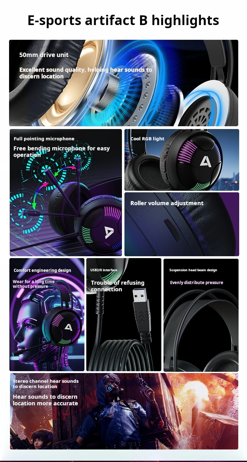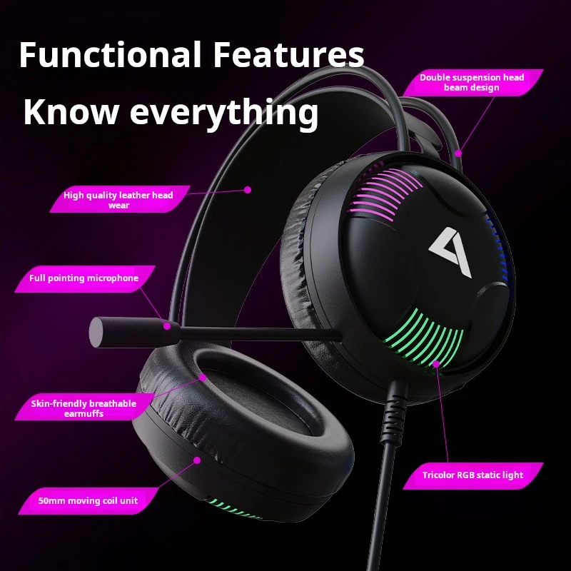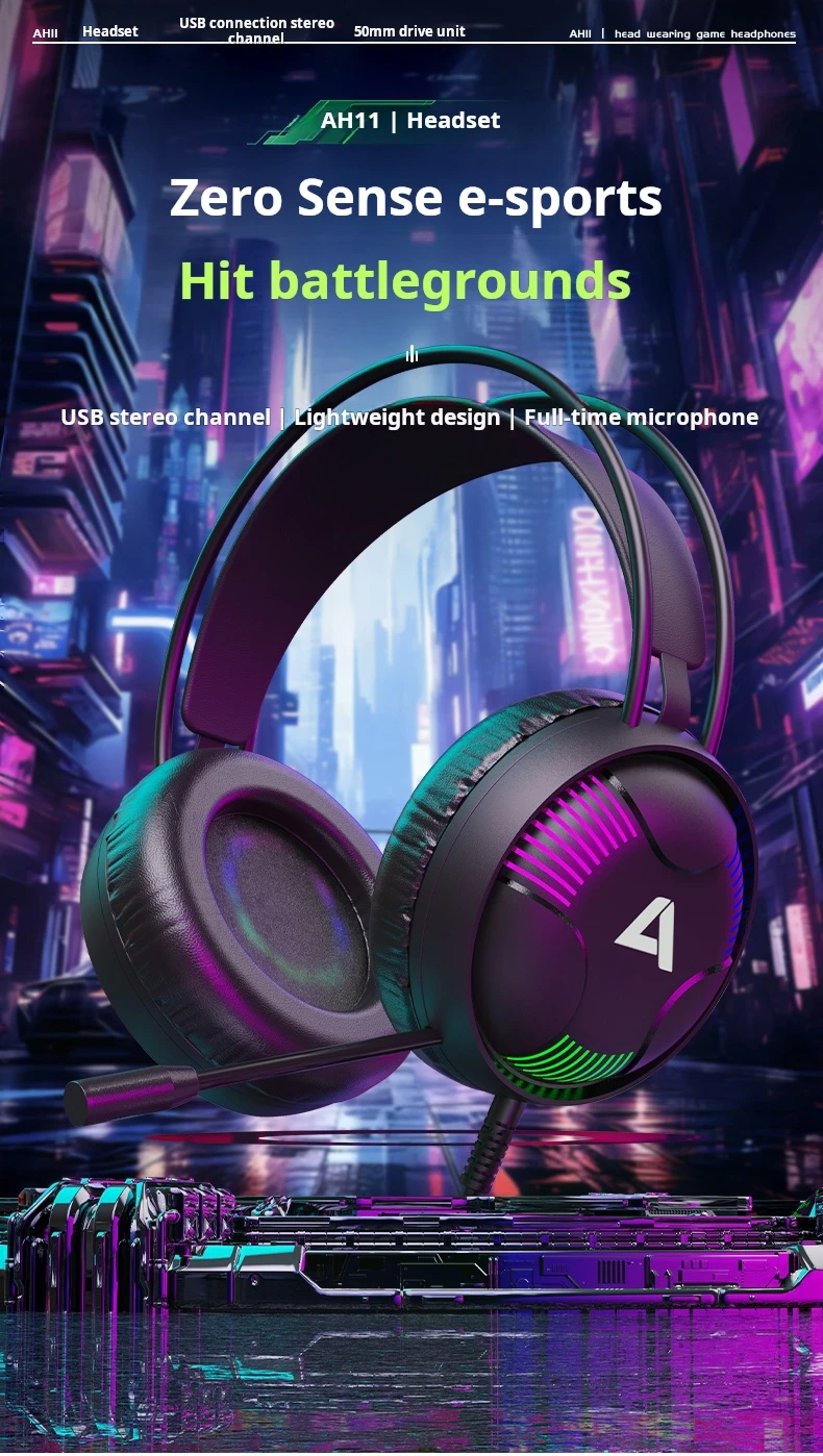 High Appearance Level AH11 Esports Gaming Headset 7.1 Eat Chicken Internet Cafe Desktop Computer Wired Headset