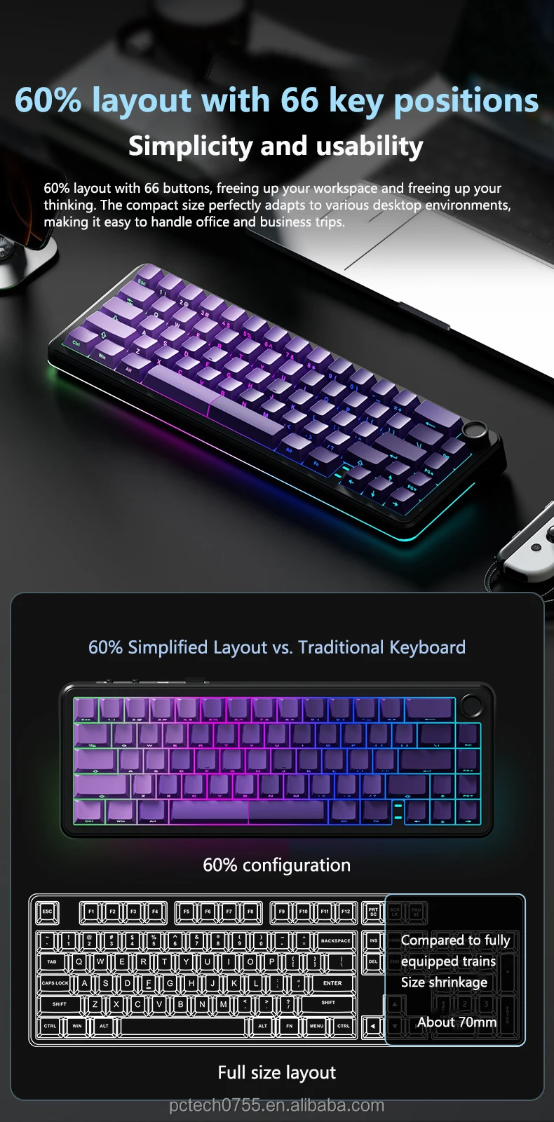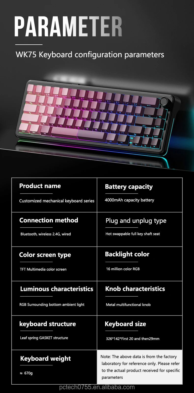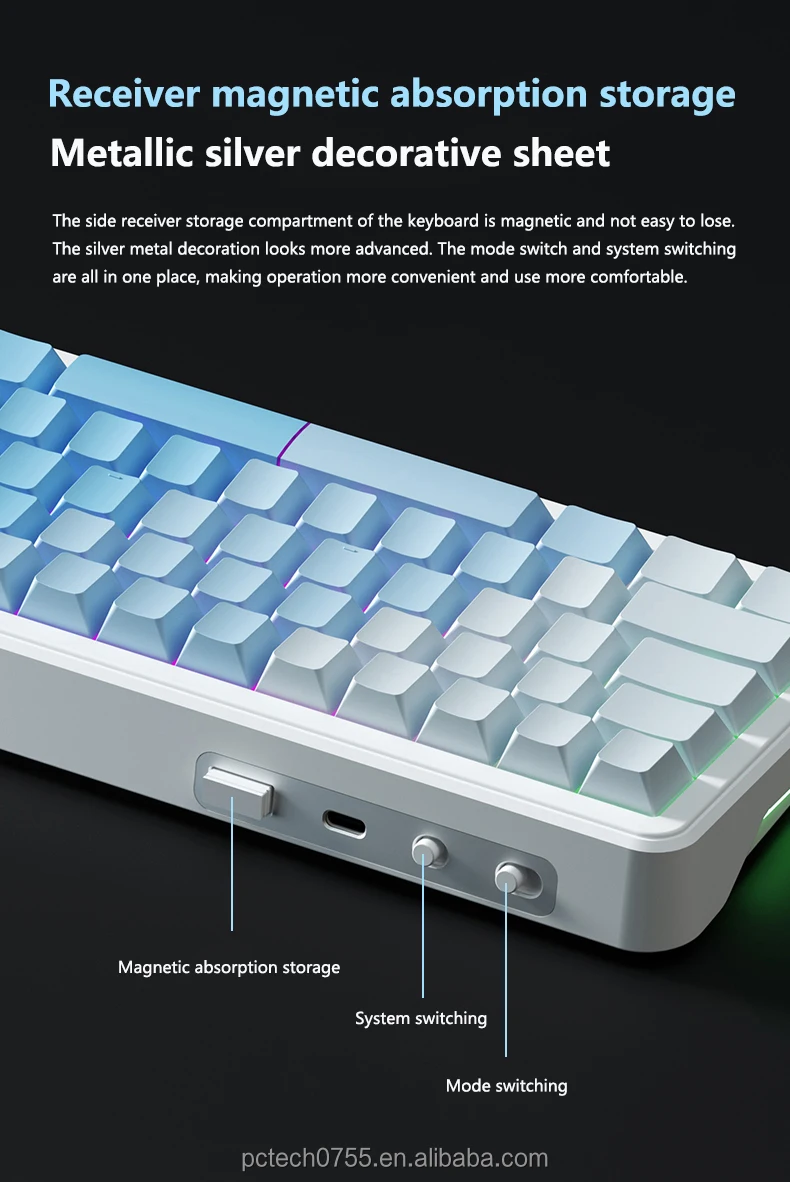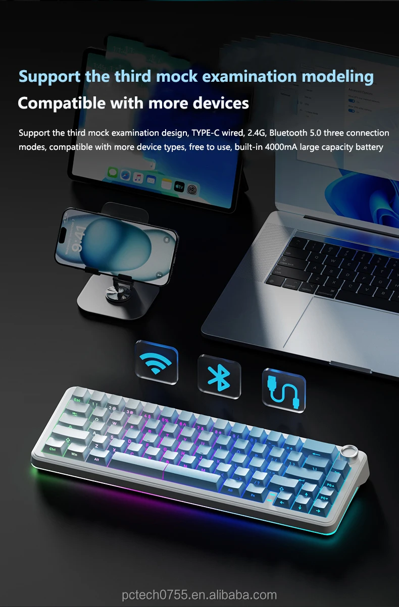 WK68 New Mechanical Keyboard 2.4G Wireless USB RGB Backlight Hot Swap Gasket PBT Keycaps Knob Switch Customize Gaming