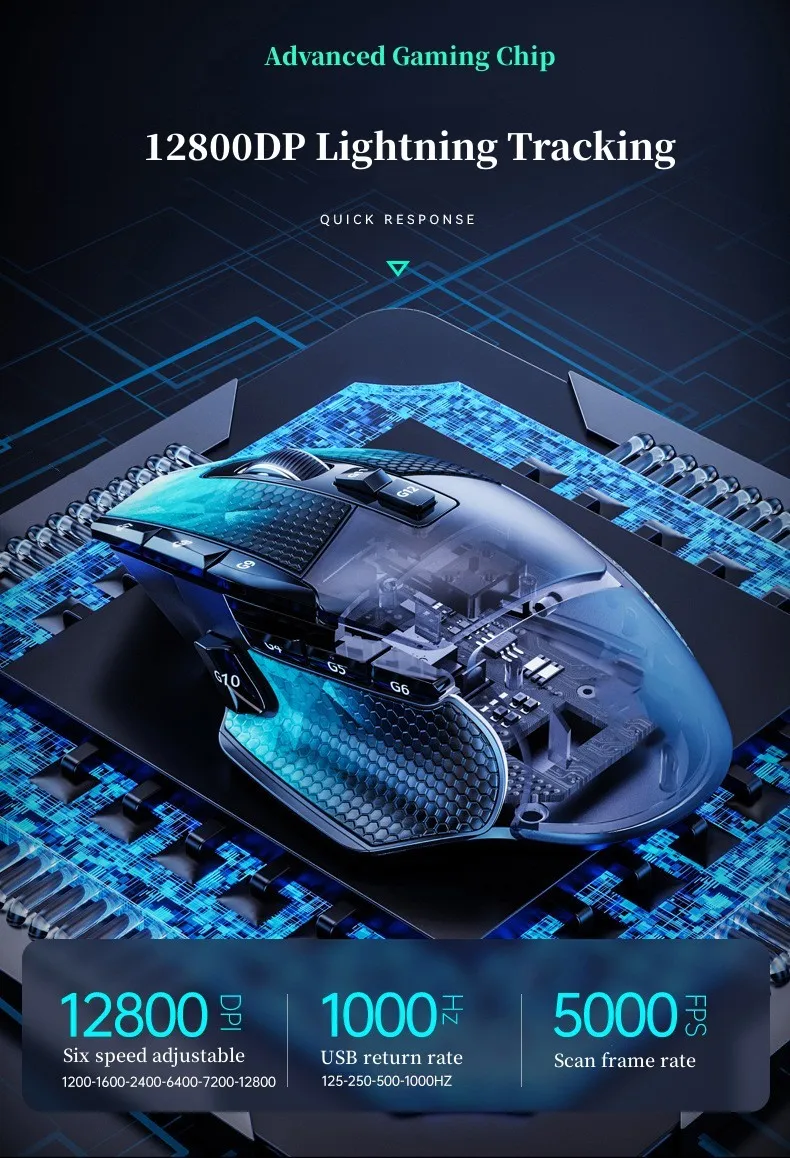 EQ-G502X PLUS-10DW Tri-Mode Connectivity BT Wireless Optical 10 BTN Mouse Gamer Table Mouse Programmable Mechanical Gaming Mouse